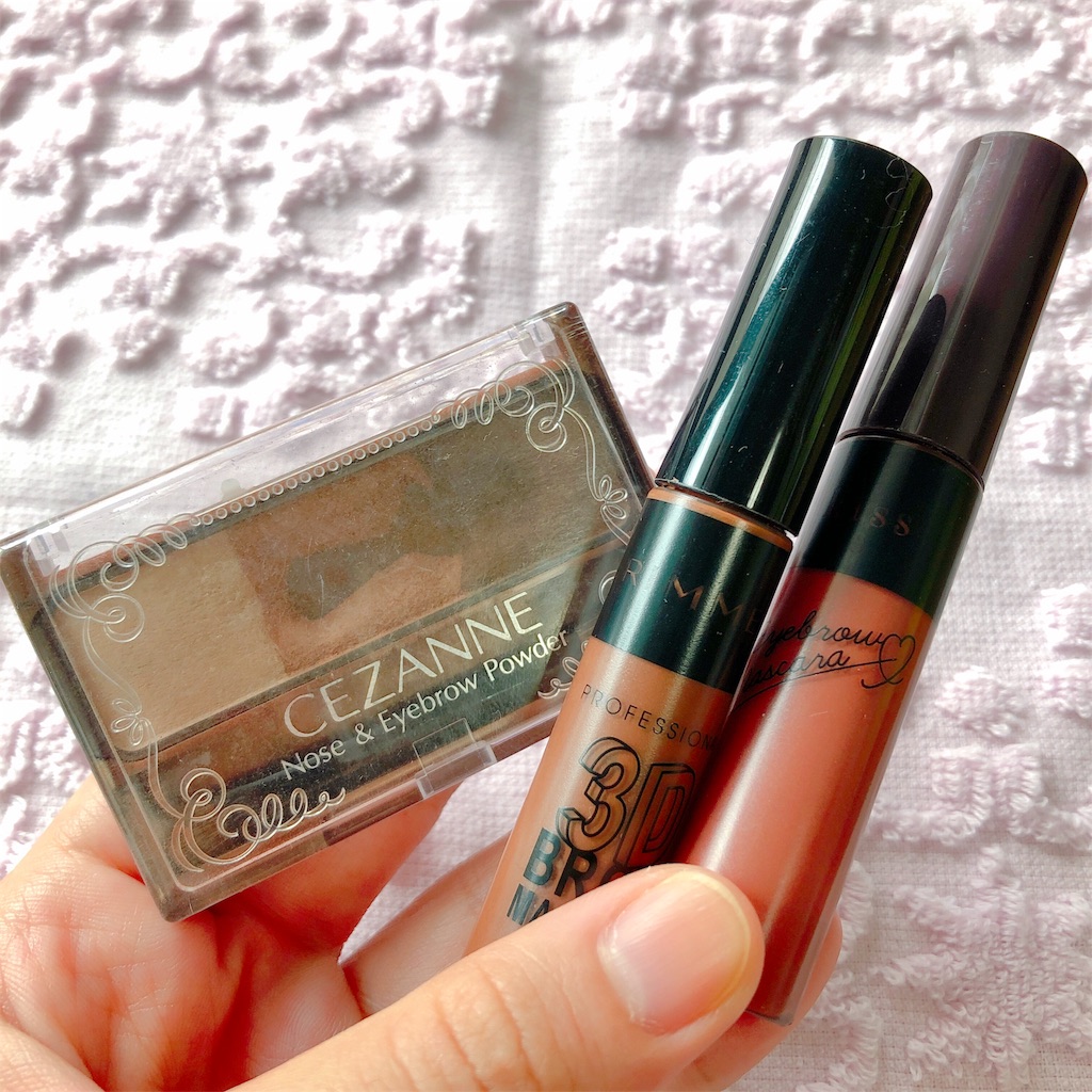 眉毛はセザンヌのパウダーの1番濃い色と真ん中の色混ぜて 眉尻からバーっと描いてます(特にこだわりなし)